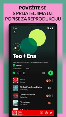Zakoračite u prostrani svemir zvuka uz Spotify, vašu osobnu oazu za glazbu i podcaste. Istražite nepregledne kolekcije najnovijih hitova, bezvremenskih klasika i ekskluzivnih podcasta, sve pažljivo kurirano i personalizirano za vaše jedinstvene preferencije. Bez obzira na vaše raspoloženje ili aktivnost, Spotify vam nudi savršenu zvučnu kulisu, osiguravajući da nikada ne ostanete bez inspiracije. Otkrijte nova izdanja, ponovno se zaljubite u stare favorite i uronite u svijet slušanja stvorenog samo za vas.